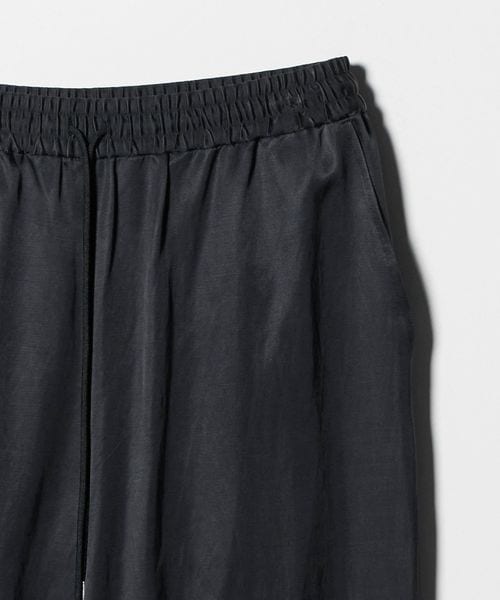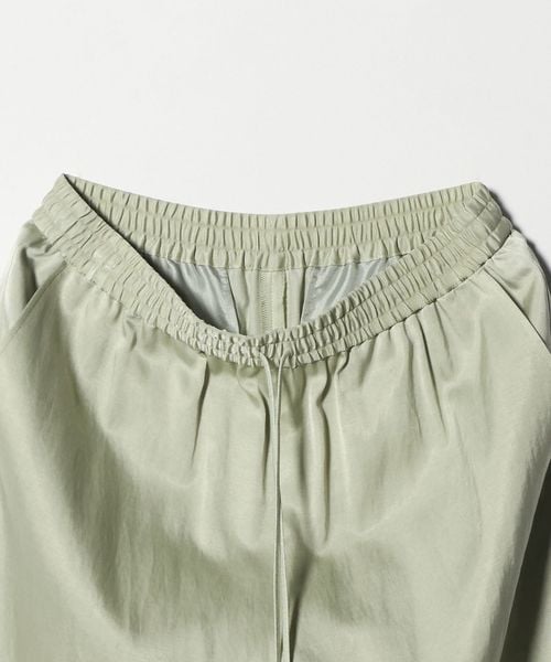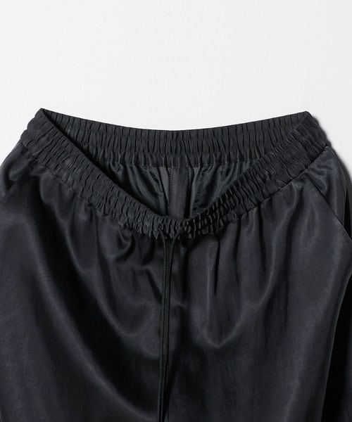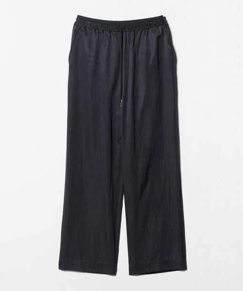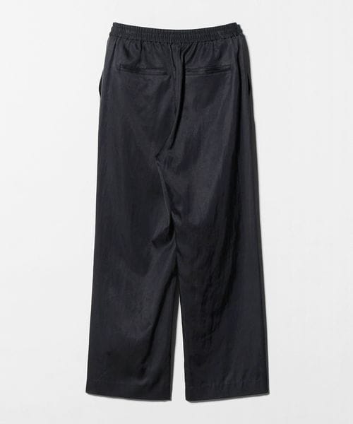 上品なサテンの質感が映える。オンオフ万能イージーパンツ。