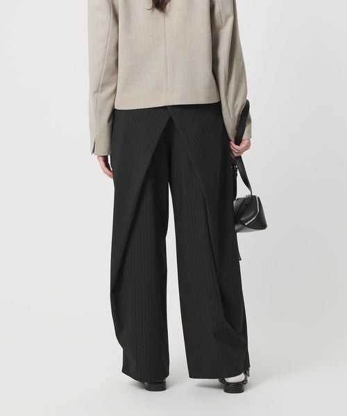バックに大胆な分量感で施したラップディテールが特徴のワイドパンツ。