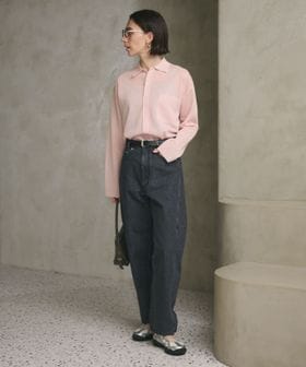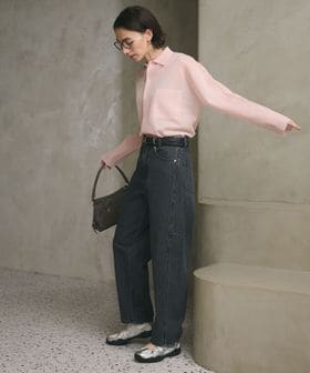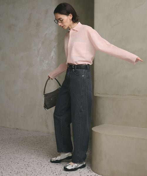 ボリュームのあるボトムとの装いは、フィット感のあるインナーを合わせたりボタンを留めてタックインするのもおすすめです。