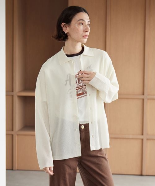 清涼感のあるニットでお作りしたシャツ型カーディガン。