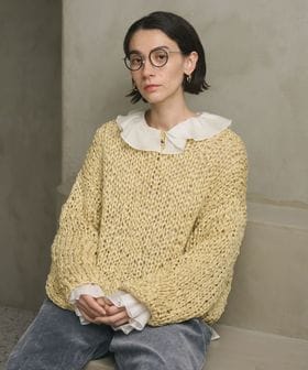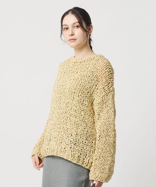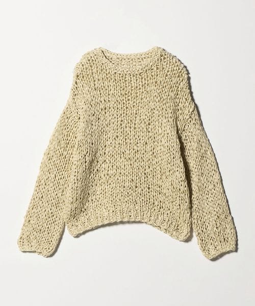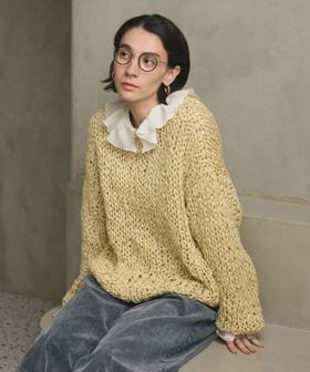ざっくりとした編地を楽しめるニットは、ナチュラルなフェミニンスタイルからシャイニーなボトムを合わせたモードミックスの装いまで幅広く活躍します。
