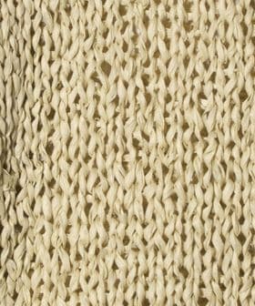 ポリエステルの不織布をテープ状に加工した糸を使用。