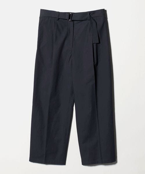 ベルテッドデザインのワイドパンツ。