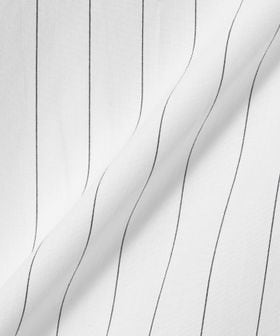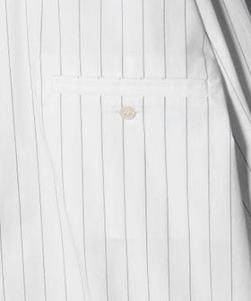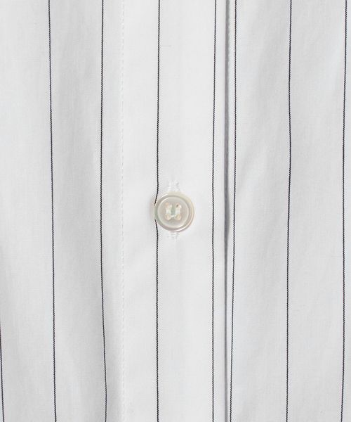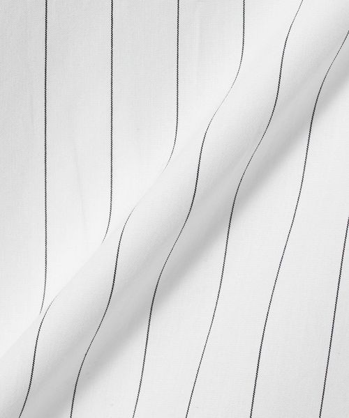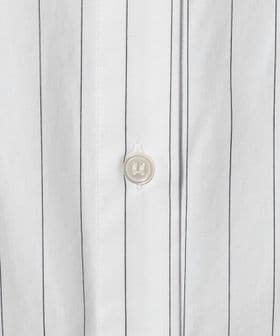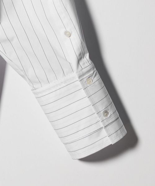 襟とカフスがそれぞれ二重になったストライプシャツ。