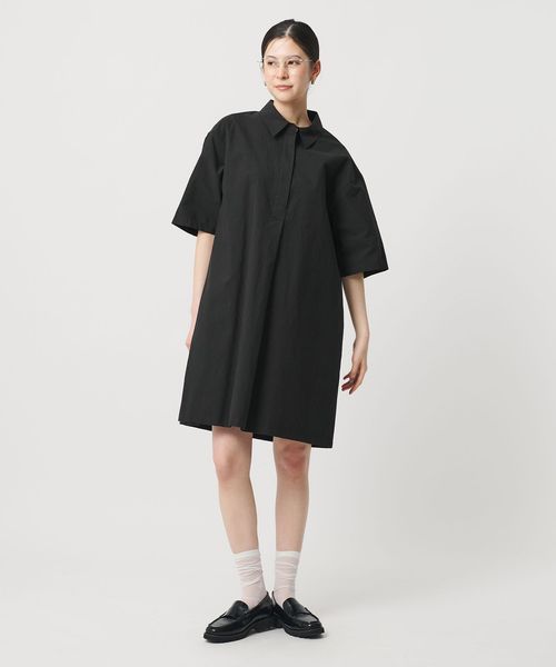 コットンナイロン ミニ シャツワンピース