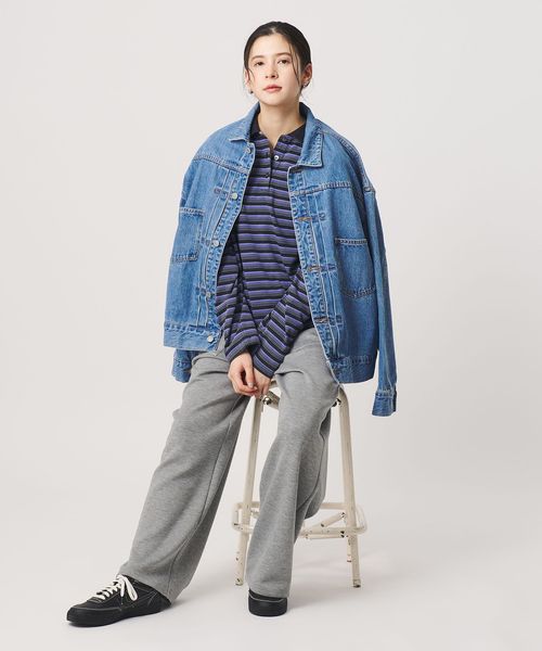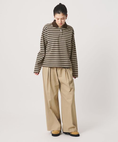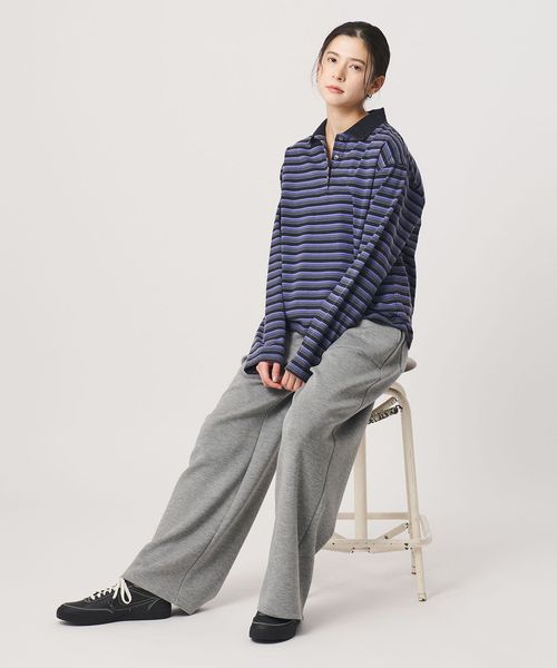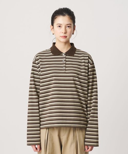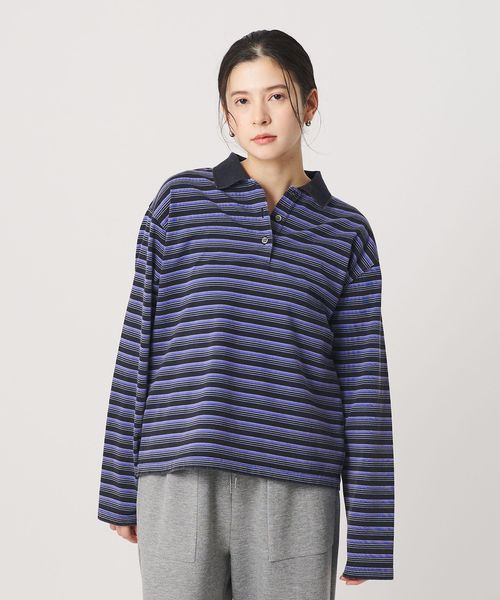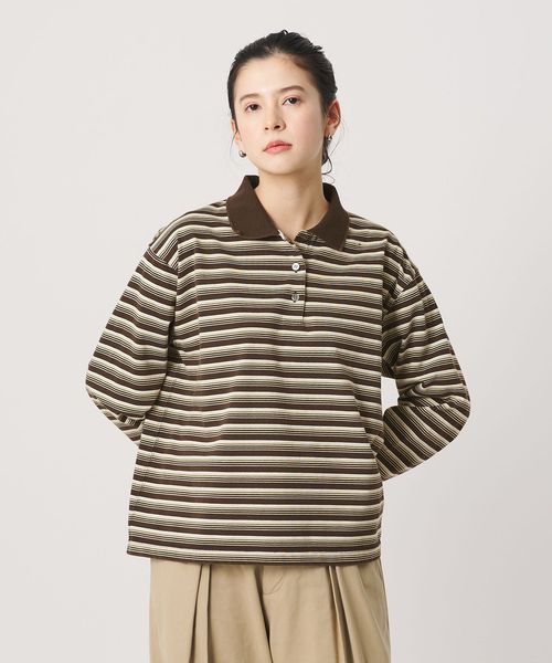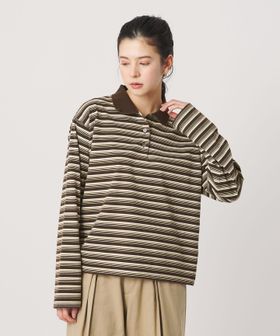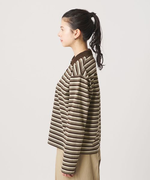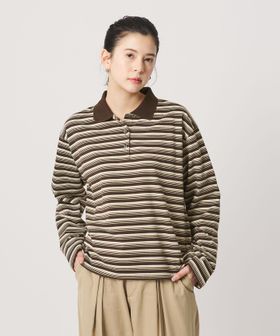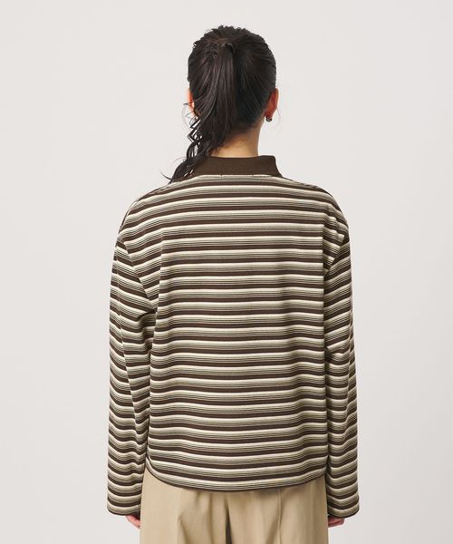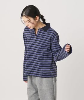 ボーダー柄が着こなしのアクセントになるポロシャツ型のプルオーバー。