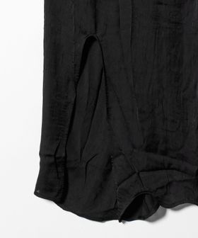 裾はアシンメトリーなデザインで、大きく波打つようなラインとスリットがアクセントになった個性が光る一着です。