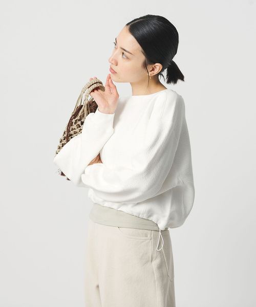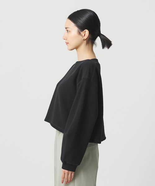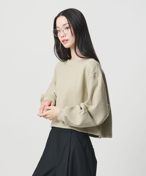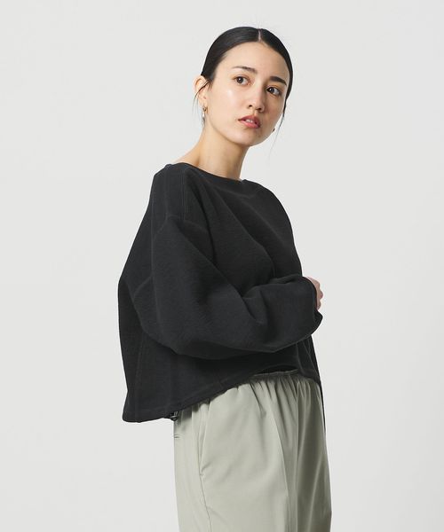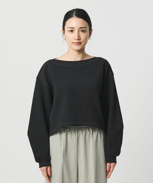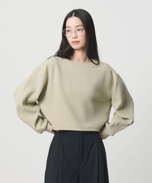 抜け感たっぷりのクロップドボートネックプルオーバー