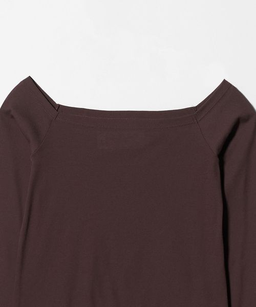 すっきりとした首元が女性らしいオフショルダープルオーバー。