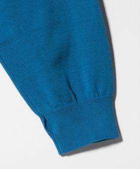 詰まり気味のVネックとパワーショルダーで存在感を放つニットプルオーバー