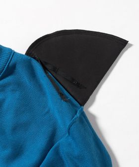 ショルダーラインを強調させる肩パッドが入り、スナップボタンでの着脱でアレンジが可能。