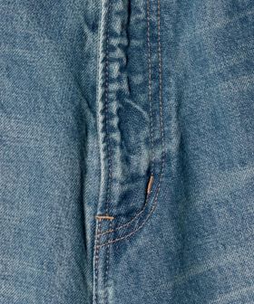 染色方法や素材にもこだわったデニム生地を用いて、ヴィンテージムードたっぷりな加工を施して仕上げられています。