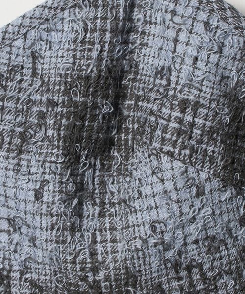 ネップ糸を使用したチェック柄のコットン生地は表面が起毛され、やわらかく温かみのある風合いと後加工によるパイル状の表情が特徴です。