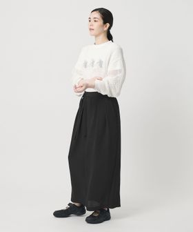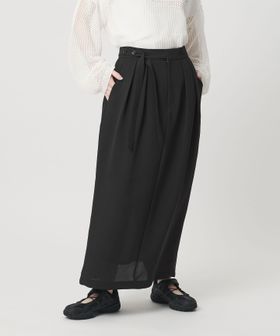 マニッシュなムードが漂う梳毛調のポリエステル生地を用いてお作りしたタックスカート。