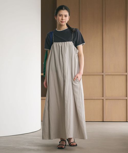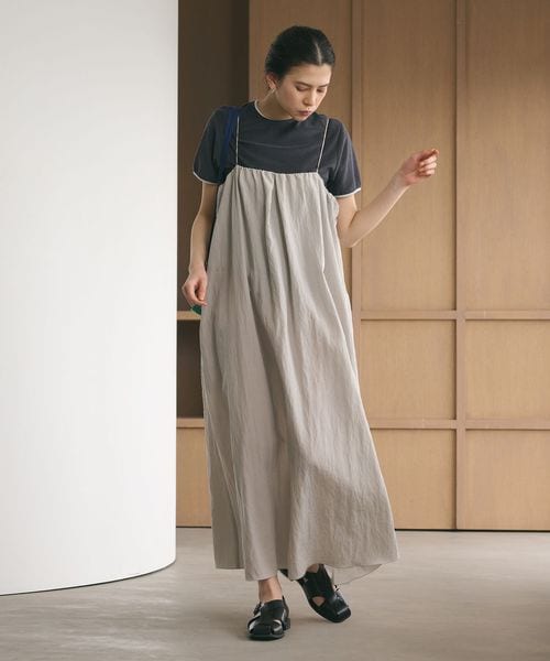 ギャザー ロングキャミソール ワンピース ウォッシャブル