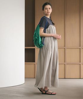 ふんわりとしたボリューミーなキャミソールワンピース。