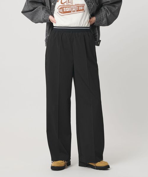 ウエストゴムのラインデザインが目をひくワイドパンツ。
