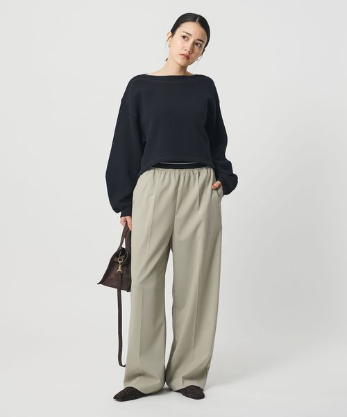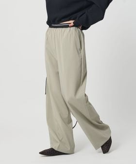 ウエストゴムのラインデザインが目をひくワイドパンツ。
