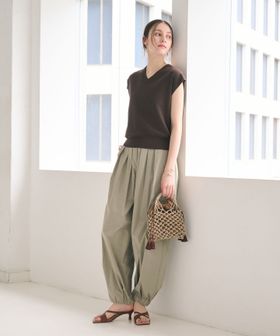 裾に向かってすぼまるバルーンシルエットパンツ。