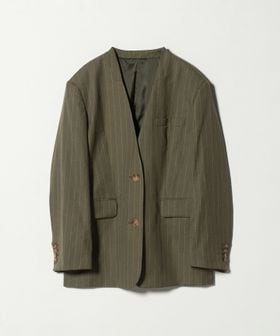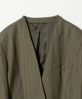 麻ブレンド ストライプ カラーレス ジャケット