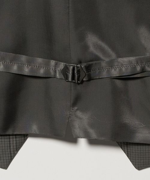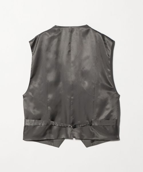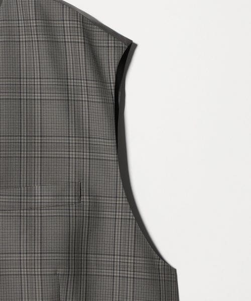 マニッシュなムードのチェック柄ジレ。