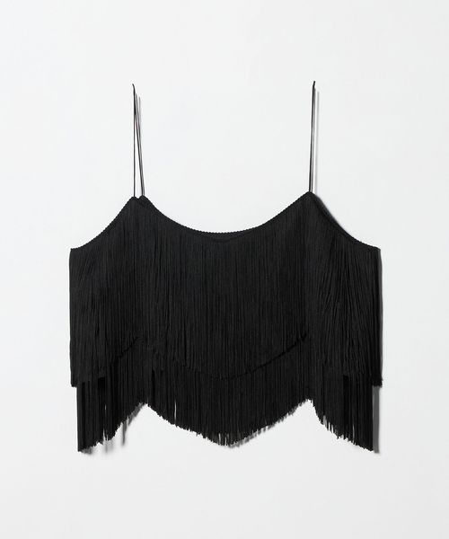 紐を束ねたタッセルのような、揺れるフリンジが目をひくキャミソール。