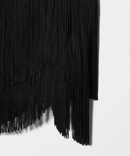 二枚仕立ての奥行きのあるフリンジ使いと、裾のスカラップのようなラインで存在感抜群の一着に仕上がっています。