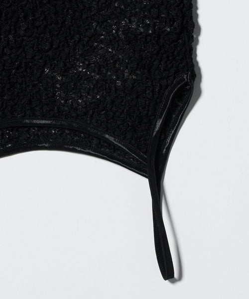 2枚のキャミソールを上下で繋ぎ合わせたような、裾にもストラップがあしらわれた個性あるルックスに仕上げられています。