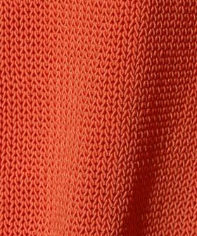 コイル形状の糸を使用した、端正な編地がポイントのショートスリーブニット。