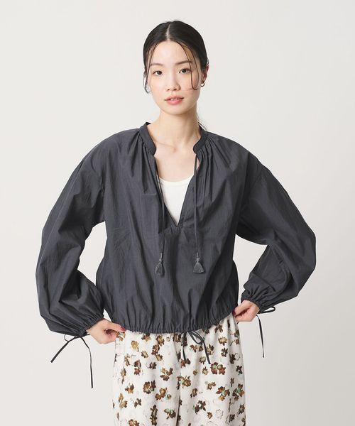 身頃や袖にたっぷりとギャザーを入れたブラウス。