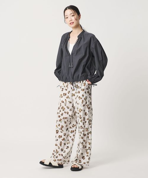 袖口や裾は共布の紐を絞ることでボリューム感の調整が可能。