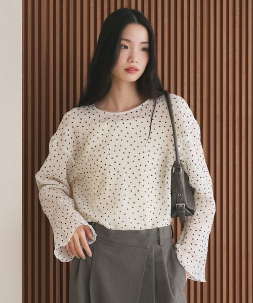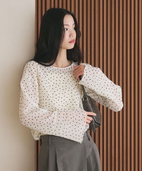着こなしをフェミニンに彩るドットシアーブラウス