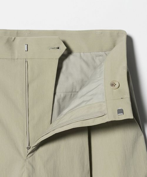 綿ナイロンブレンドのライトな素材感でハリはありつつタイプライターパンツのように軽いはき心地。