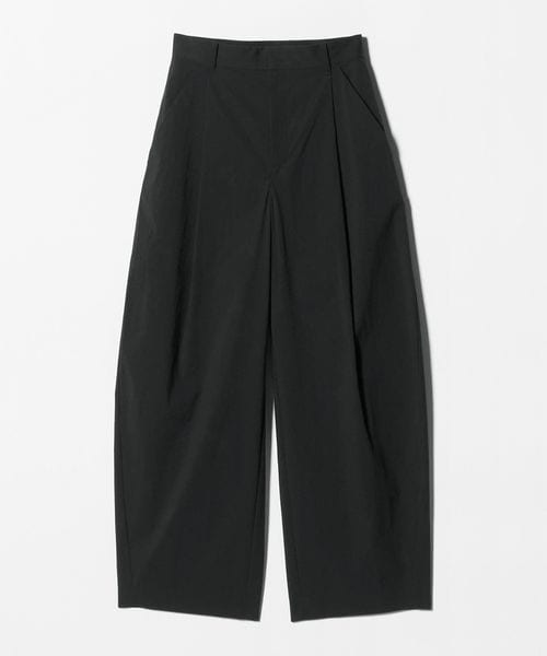 シンプルなトップス合わせも様になるトレンドのカーブパンツ。