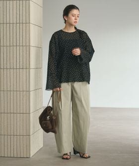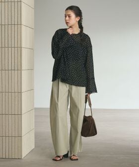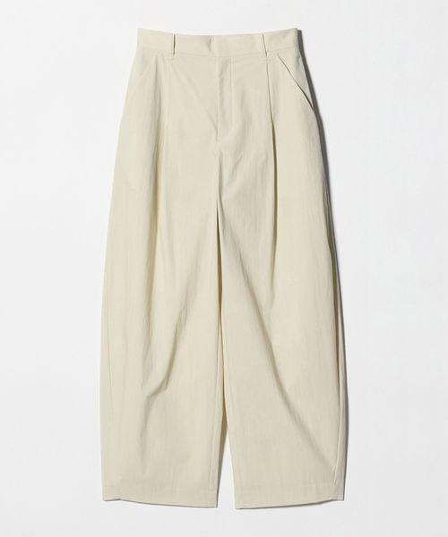 綿ナイロンブレンドのライトな素材感でハリはありつつタイプライターパンツのように軽いはき心地。