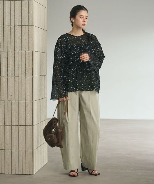 シルエットが映えるよう、ショート丈のカーディガンや、タイトなカットソーなどコンパクトなトップスを合わせるのも◎。