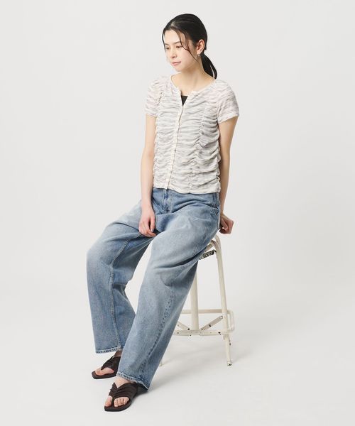 クロシェ編みのカーディガンやフェード感のあるニットなど、表面が特徴的なアイテムで今期のムードを取り入れたコーディネートがおすすめです。