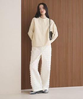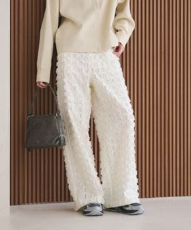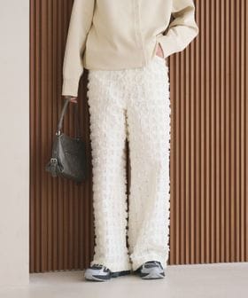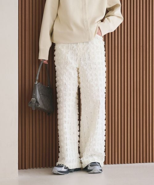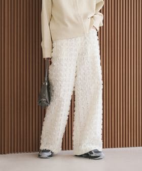 大きめなスクエアのカットジャガードで表現したフリンジが印象的なパンツ。