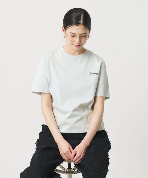 すっきりとしたサイズ感でスカートを合わせたフェミニンカジュアルスタイルにもぴったりなTシャツです。