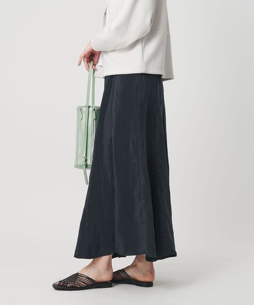 ワッシャーをかけたような表面感が目を引くフレアスカート。