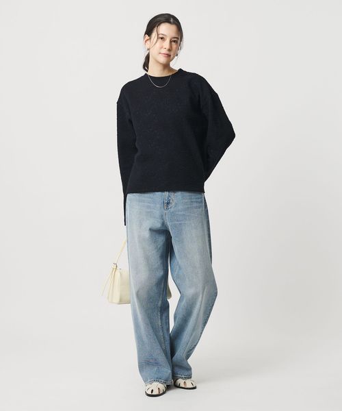 肩を落としてリラックス感を出した、ボディラインを拾いにくいシルエットもポイント。