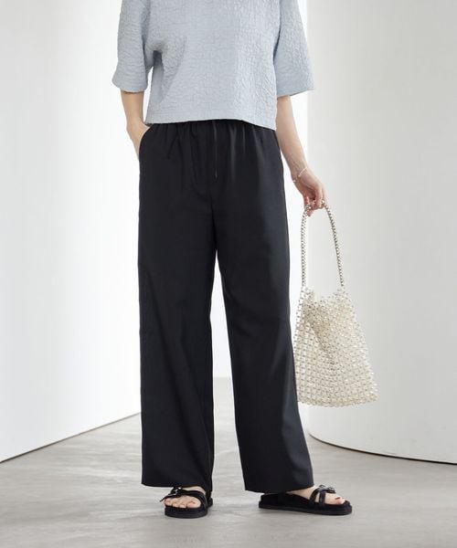 ドローストリングのウエストで楽な着心地が魅力のパンツは、お仕事から旅行まで幅広いシーンで活躍します。