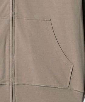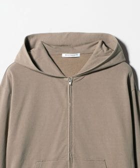 コットンのミニ裏毛を使用した薄手のフードジップパーカー。