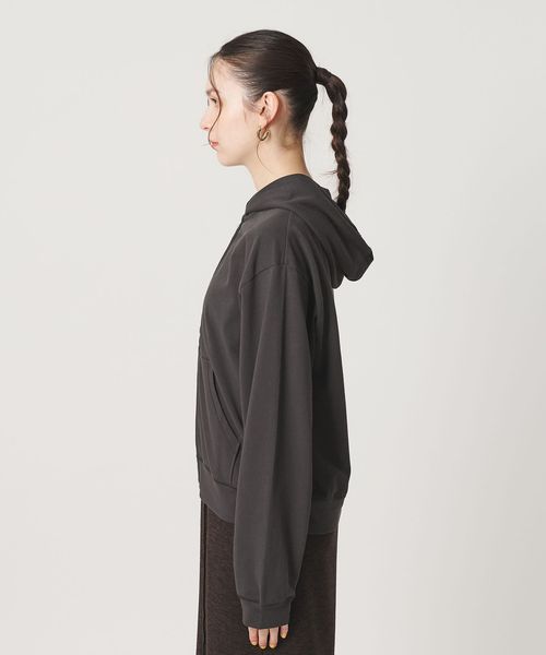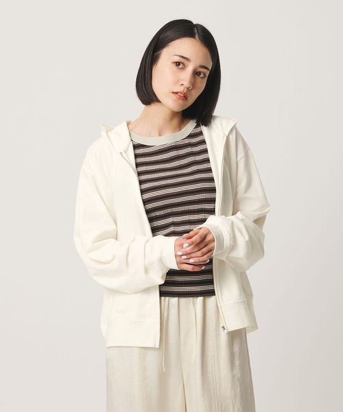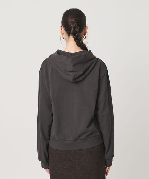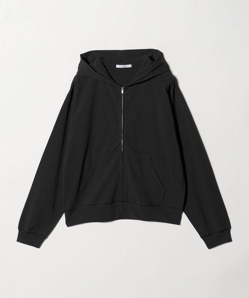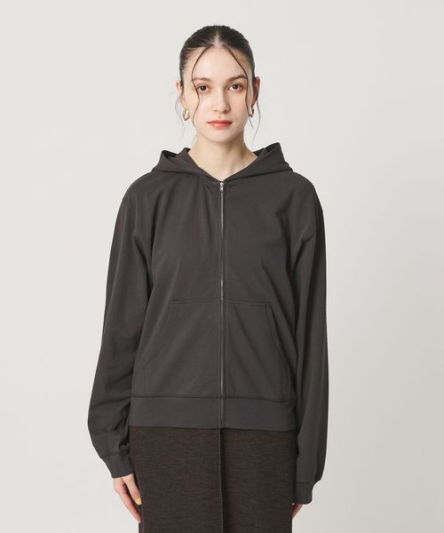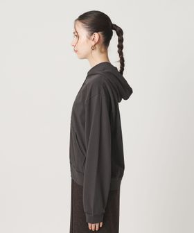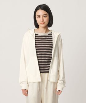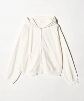 コットンのミニ裏毛を使用した薄手のフードジップパーカー。