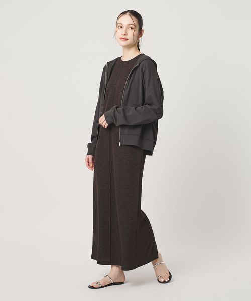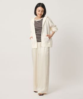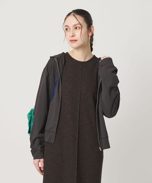 大きなカンガルーポケットでカジュアルな雰囲気がありながらも、シルバーカラーのジップ使いによって品の良さも感じられる一着。
