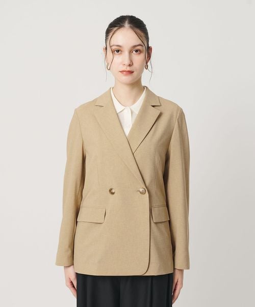 着用時にフロントを留めなくても軽さが出るようにダブルボタンで仕上げているのがポイント。