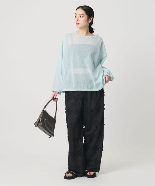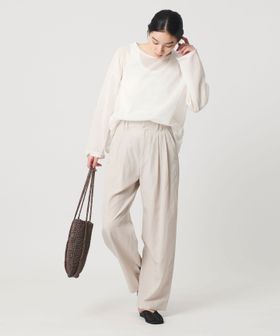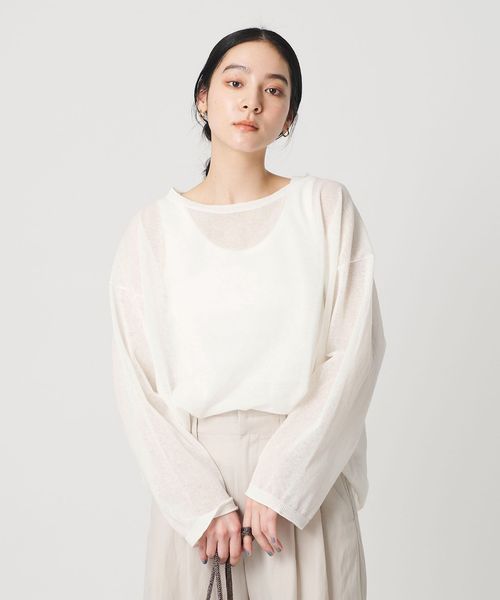 ルーズでありながら品よく決まる。ナチュラルな風合いとシアー感の麻ブレンドボートネックニット。