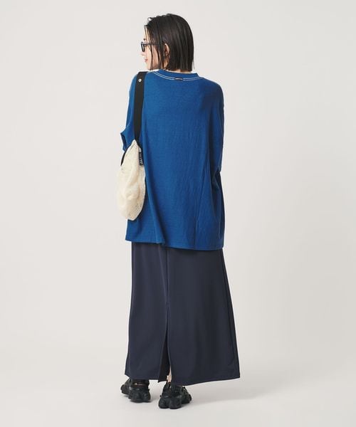 オーバーサイズを活かして、ショートパンツや細身のボトムと合わせたり、落ち感のあるスカートやスラックスできれいめカジュアルコーデを楽しむのもおすすめです。