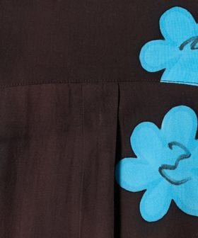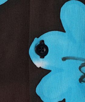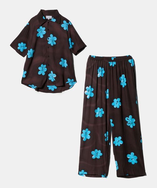 インパクトのある大胆な柄が目を引く、上下セットのパジャマ。