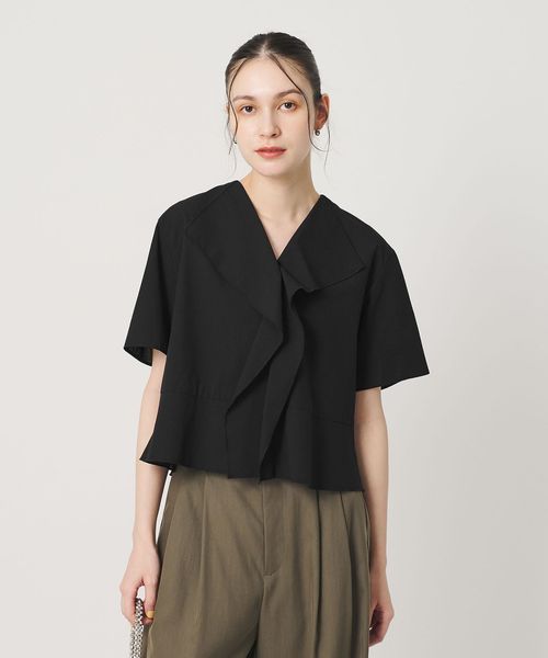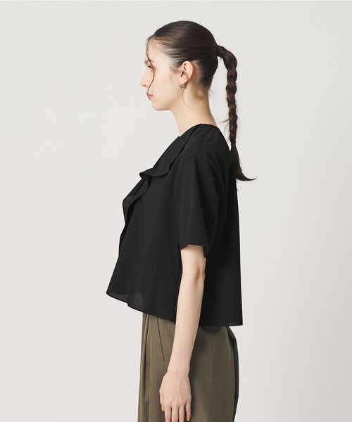 フロントのラッフルディテールがポイントになったシャツブラウス。